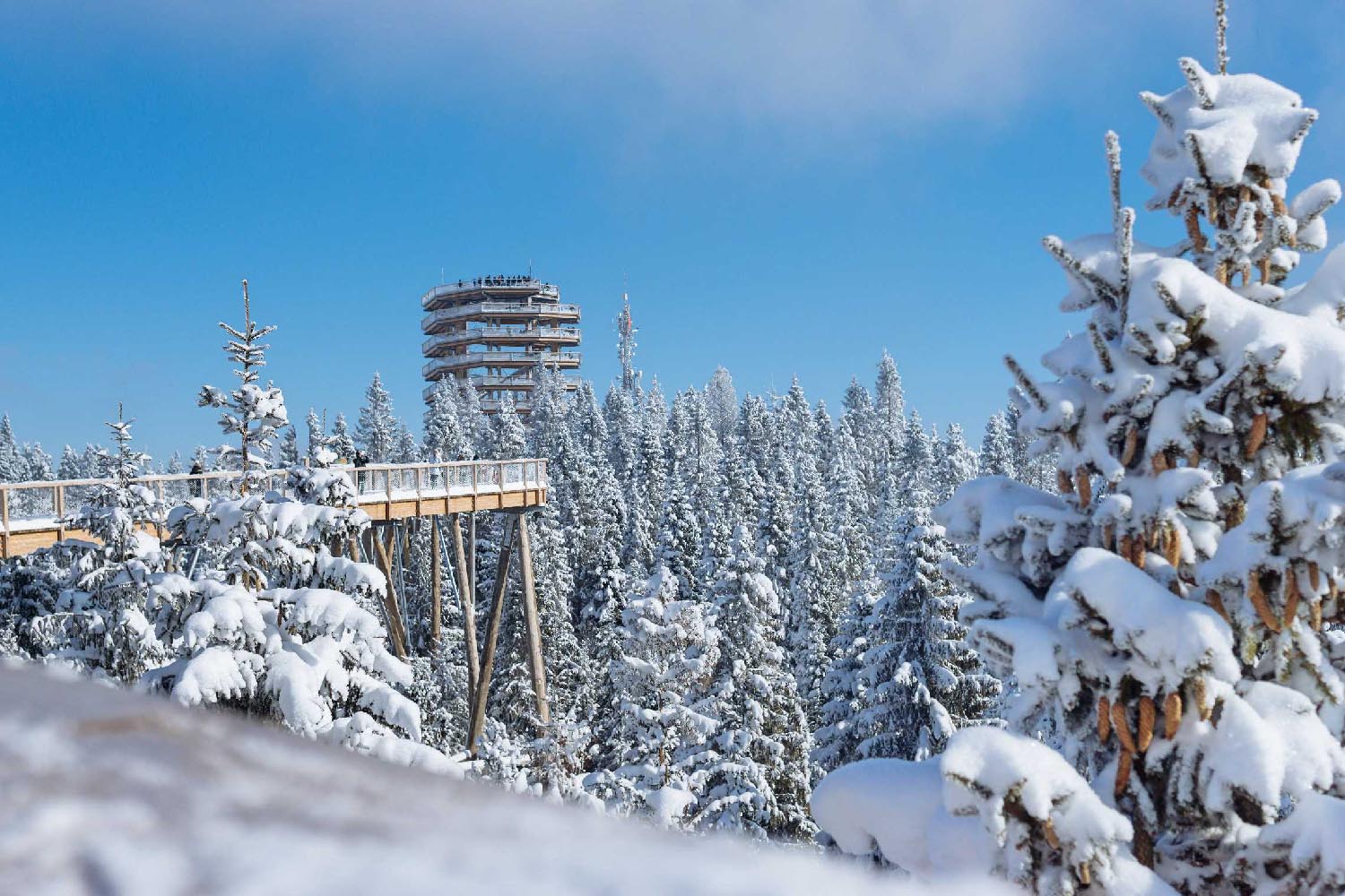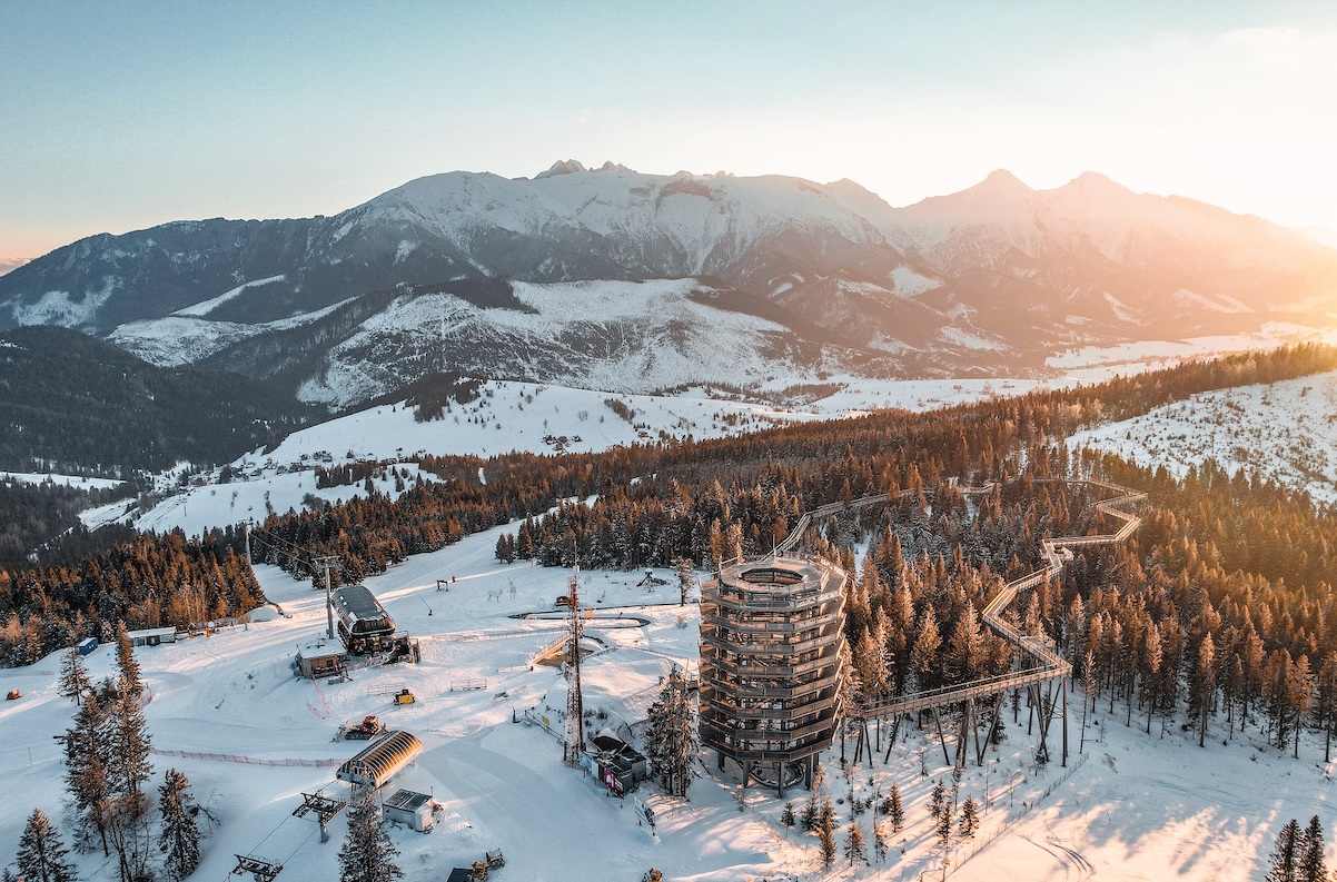 Доріжка над кронами дерев є найновішою атракцією у словацьких Татрах. 32-метрова оглядова вежа над лісом подарує незабутні засніжені краєвиди з висоти пташиного польоту. Фантастична панорама гір на Високі Татри. Прогулянка стежкою над верхівками дерев до вежі оглядової.